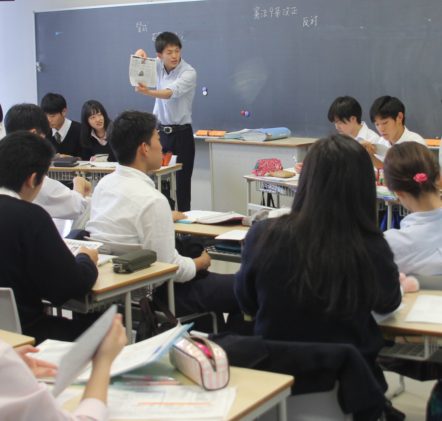 There are about 1200 students in three grade levels. About 60% of the student body comes by recommendation from the Aoyama Gakuin junior high School, and 40% enter by examination at the first-year level.