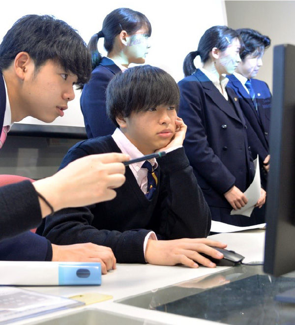 Taking advantage of the benefits of a comprehensive education system, our school operates a high school-university collaboration initiative with Aoyama Gakuin University, offering programs such as "Taking university classes", "Introductory Academic Courses", and "International Understanding and Study Abroad Preparation Programs."