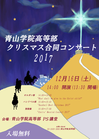 1989年に創められ今年で29回目となる、オルガン部・ハンドベル部・聖歌隊によるクリスマスコンサートです。クリスマスの意味を考えつつ、イエス様降誕の大いなる喜びをそれぞれの音楽で表現します。