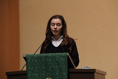 She did this in Japanese! She ending by saying that she plans to use her experiences in Japan and our school in the future.